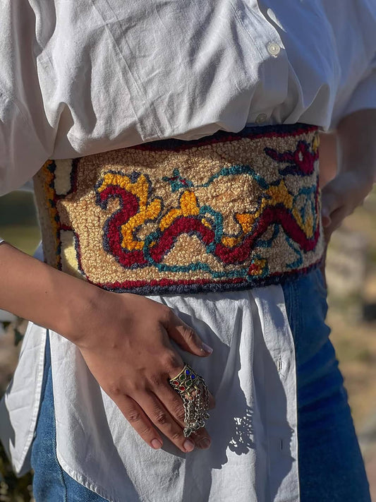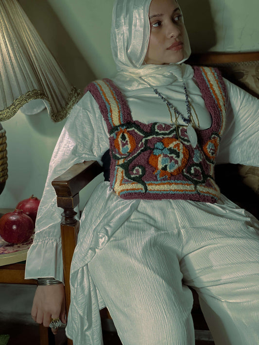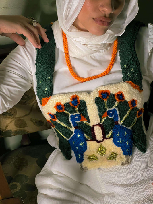 Alia Arafa is a Handmade textile artist She uses old Persian carpet techniques using the punch needle method on carpet and clothes.