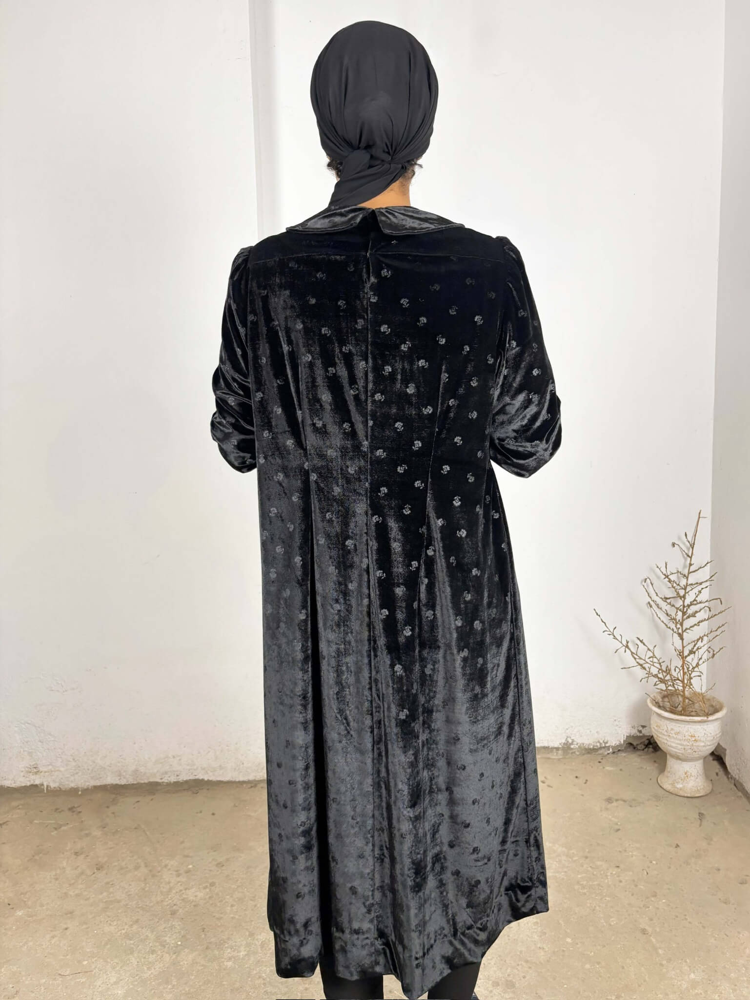 Embrace effortless vintage style in this wonderfully loose black velvet dress sprinkled with playful polka dots. The relaxed fit offers comfort without sacrificing elegance, while the luxurious velvet fabric adds a touch of sophistication to your everyday rotation. Those charming dots bring a cheerful, retro-inspired flair that works beautifully for casual outings or dressed-up occasions alike. Perfect for anyone who believes style should feel as good as it looks—no fussing required.