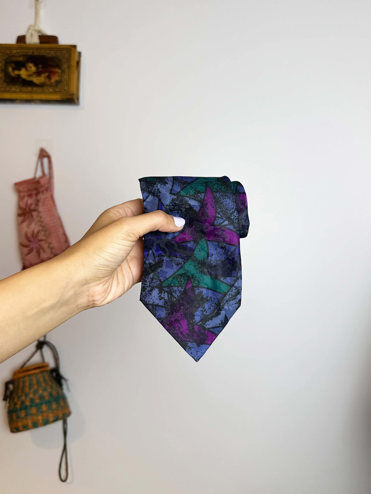 This blue and purple patterned tie is your secret weapon for turning heads and sparking conversations. The vibrant geometric design adds instant character to your wardrobe, whether you're conquering the boardroom or celebrating life's special moments. Mix it with your favorite suits or layer it over casual shirts for unexpected style wins. Your tie game just got a serious upgrade.