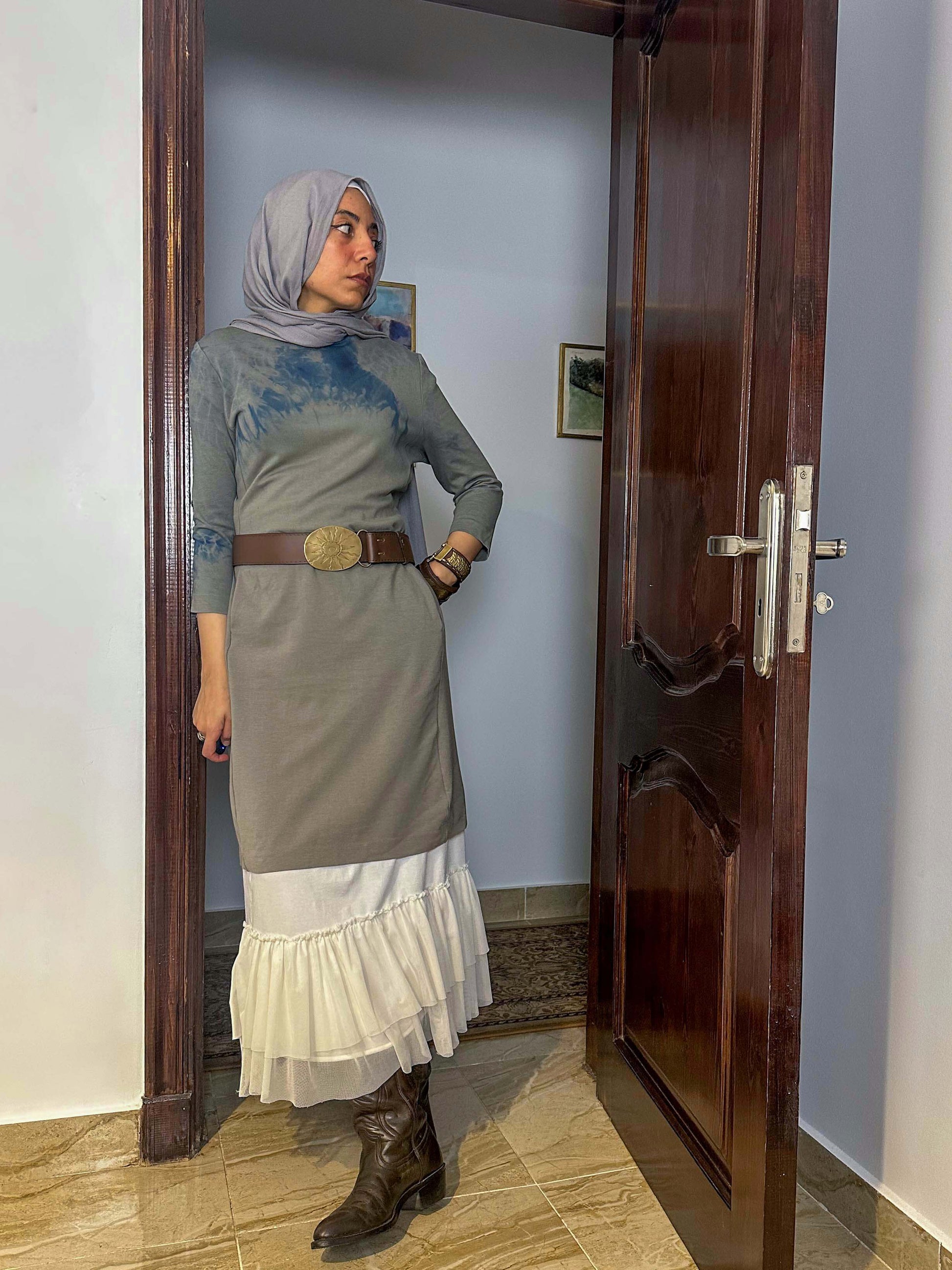 Step into style with this thrifted Grey Tie Dye Midi Dress, crafted by the artistic wizard Basma from Print Zone! It's long-sleeved and ready to mix and mingle at any occasion (even if that occasion is just lounging at home). Perfect for looking fabulous while sipping your coffee—or whatever fancy drink you fancy! Get ready to turn heads and maybe even start some tie-dye envy!