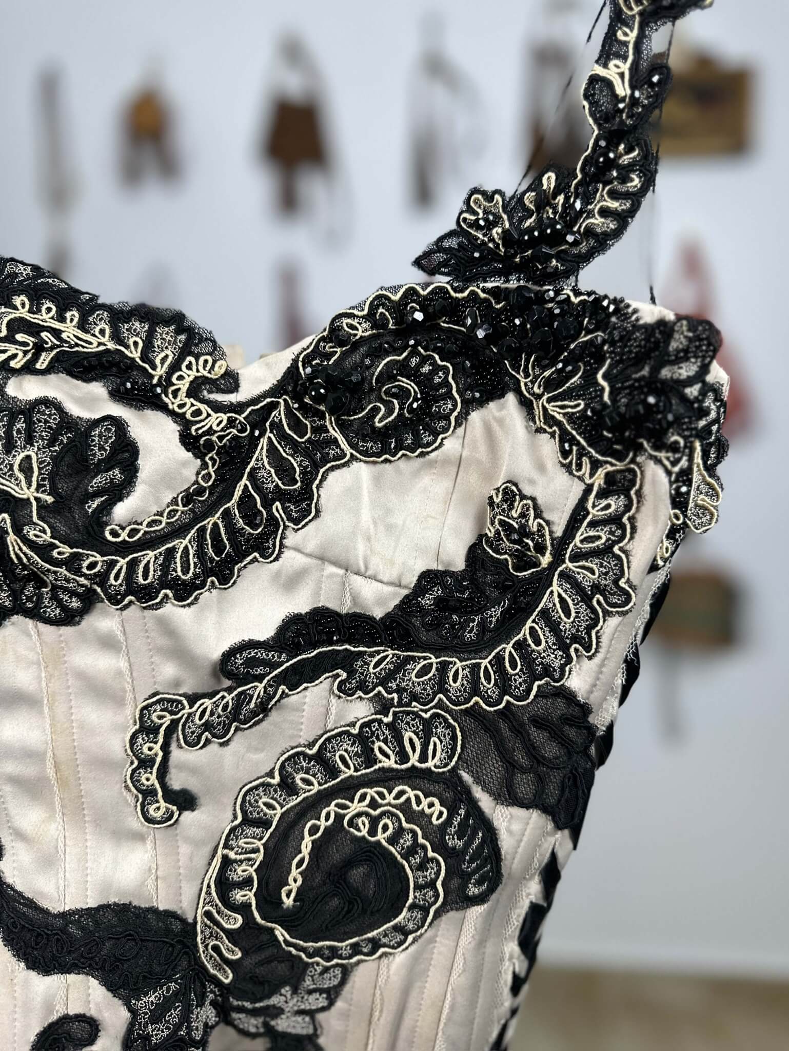 Elevate your style with the Karen Millen Lace Corset, where off-white elegance meets bold black lace. This playful piece contours your silhouette, adding a touch of flirtatious charm perfect for making a statement at any event. Embrace the blend of delicate and daring with effortless confidence.