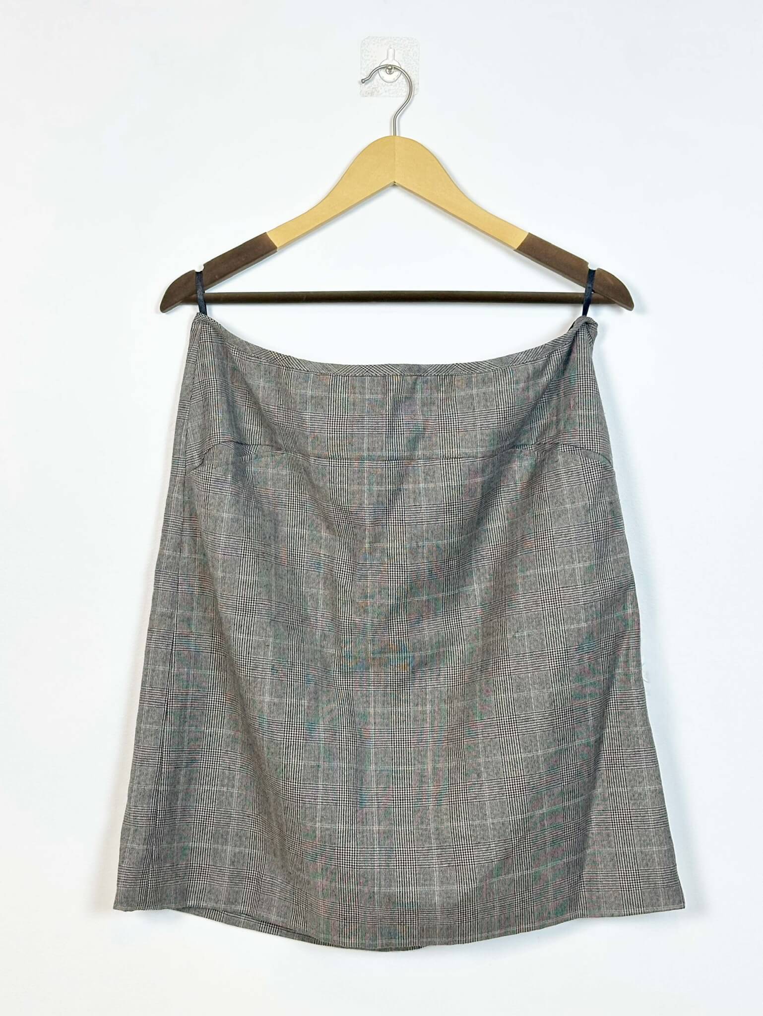 Elevate your wardrobe with this chic plaid grey mini skirt—the perfect piece for mixing classic style with modern edge. Featuring a timeless plaid pattern in sophisticated grey tones, this skirt pairs effortlessly with everything from cozy sweaters to sleek tops. Whether you're heading to brunch, a night out, or just want to add some personality to your everyday look, this versatile mini delivers instant polish and playful charm. ( 50% wool 25% polyester 25% viscose)